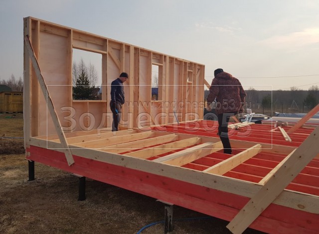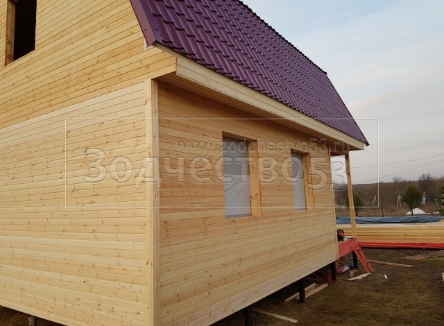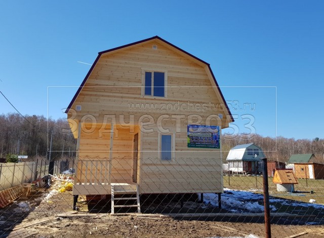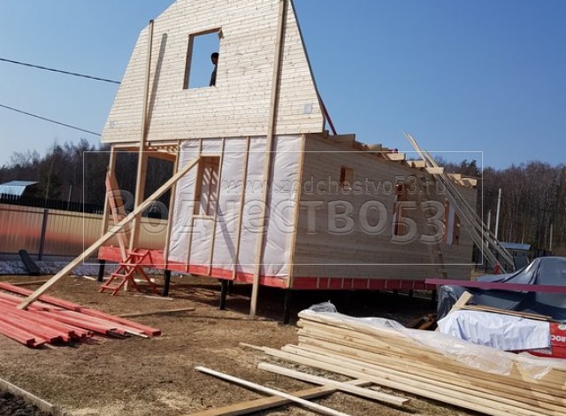 Каркасный дом общими размерами 8.0*6.0 с утеплением стен 150 мм под ломаной крышей. Объект построен: Московская область, Ступинский район, д. Волково, СНТ" ЩИТ".