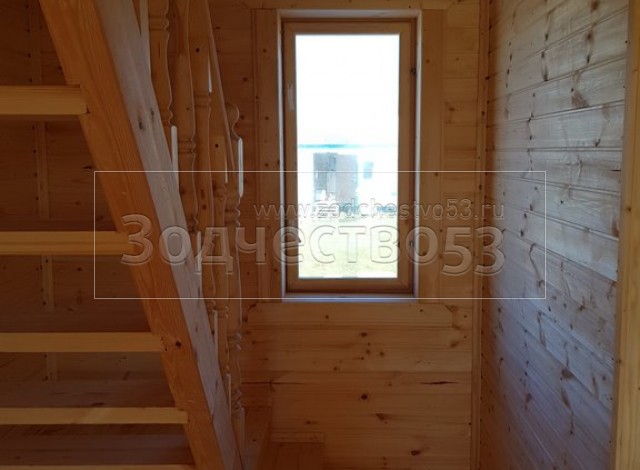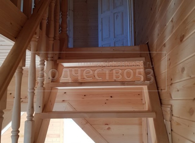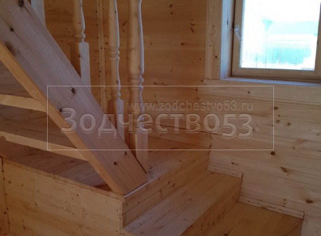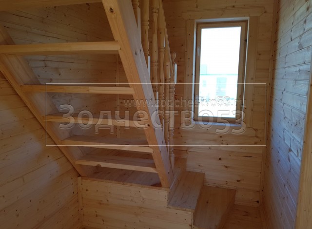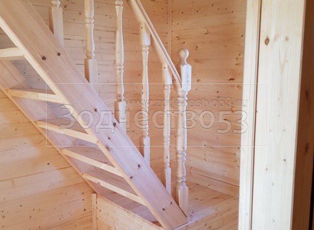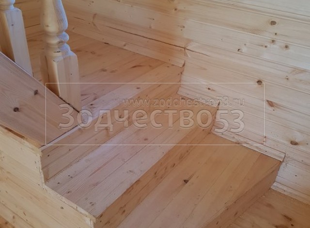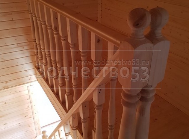 - Лестница:двухмаршевая с точеными балясинами,стартовыми столбами и перилами.
