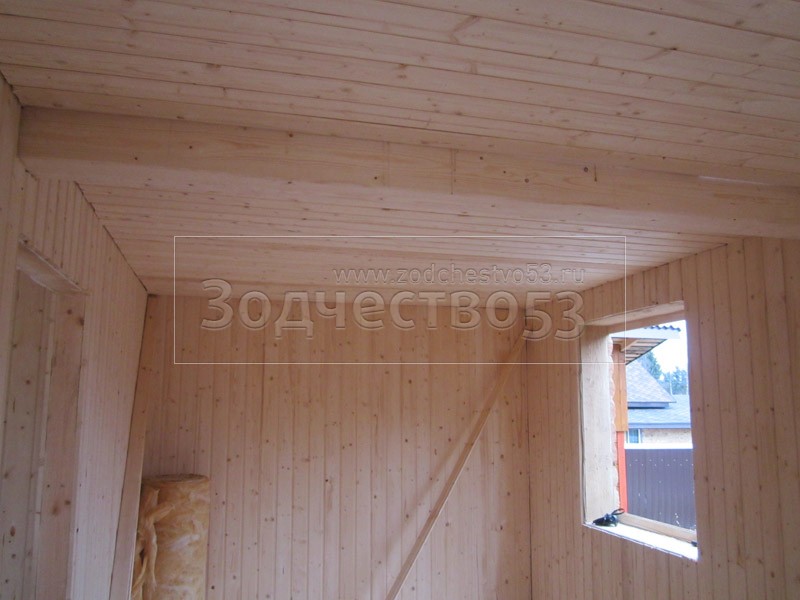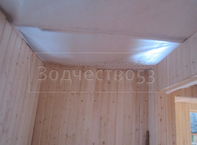 - Потолки подшиты вагонкой класса «В», с утеплением 200 мм. (Изовер) с проложкой двойной парогидроизоляции.