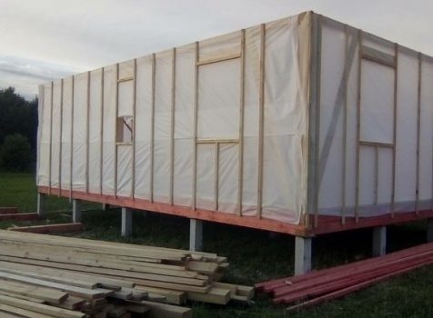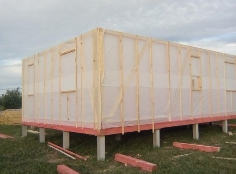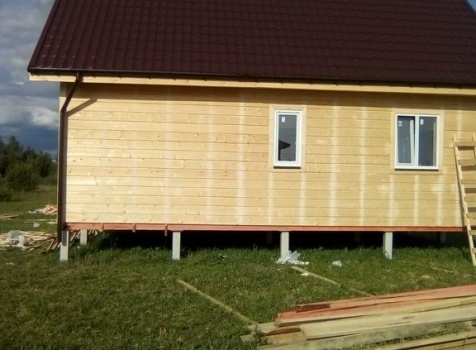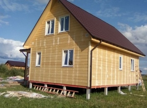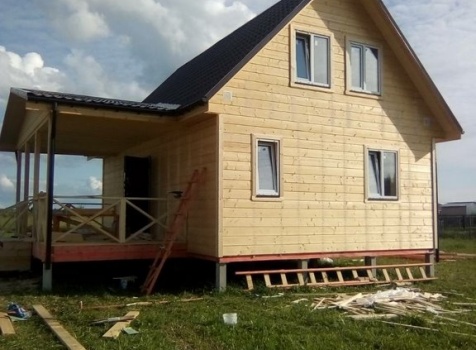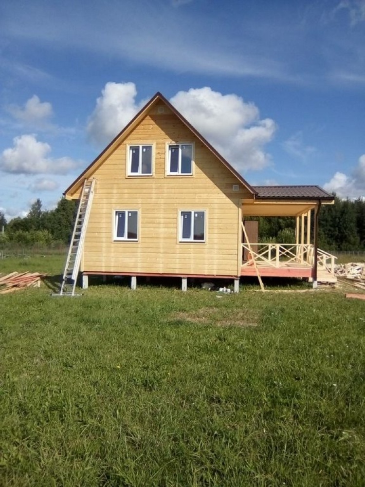 Двухэтажный дом общими размерами 6.0*9.0, каркасно-щитовой с утеплением в 150 мм(стены) под двухскатной крышей и открытая терраса 3.0*6.0 под отдельной двухскатной крышей. Объект был построен: Ярославская обл., Рыбинский р-он, с/с Назаровский, д. Артюкино