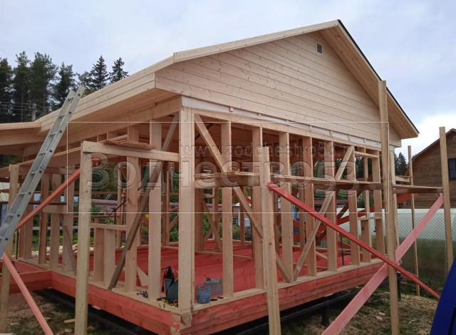 - Фронтоны дом: каркасно-щитовые ,обшиваются Имитацией бруса