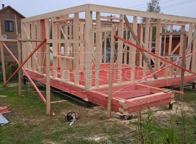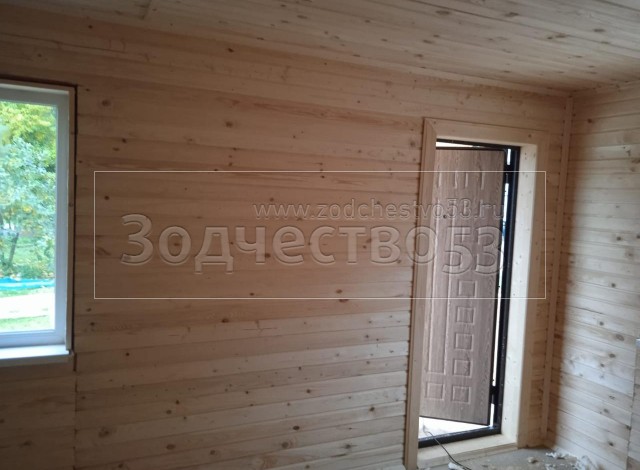 - Стены: каркасно-щитовые ,обшиваются снаружи Имитацией бруса, внутри вагонкой
