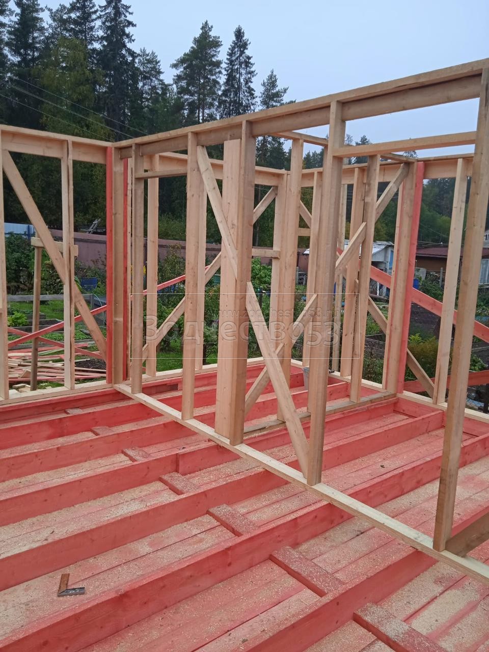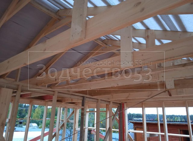 - Стропильная система: межэтажные перекрытия ( Камерной сушки ) 40×200 через 80 см , стропила ( Камерной сушки ) 40×150 через 80 см .