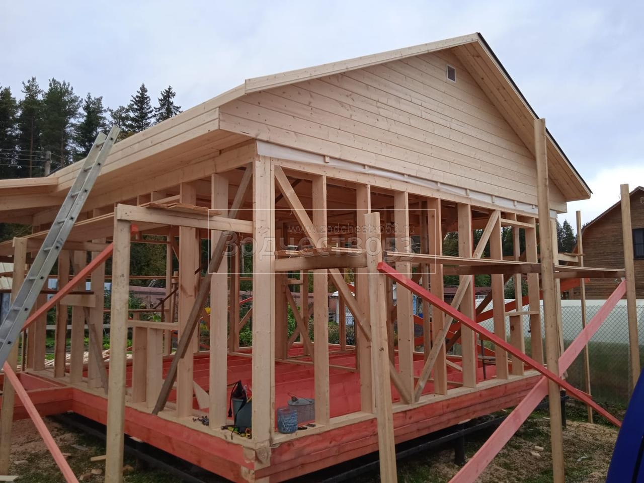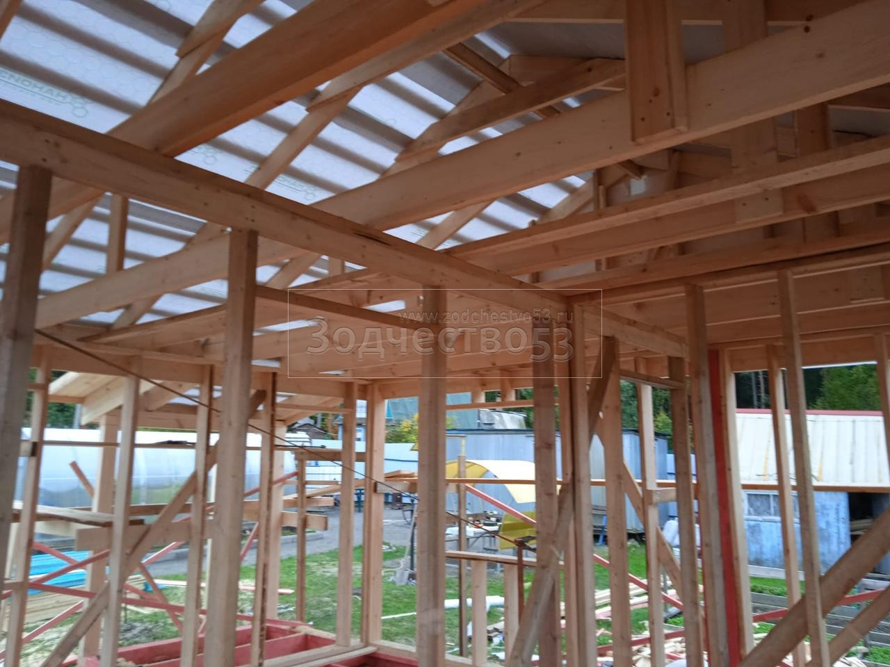 Строительство одноэтажного дома общими размерами 7.50×6.0 (6.0×6.0 дом) каркасно - щитовой , под двухскатной крышей и (1.50×2.0 открытое крыльцо) под отдельной односкатной крышей.