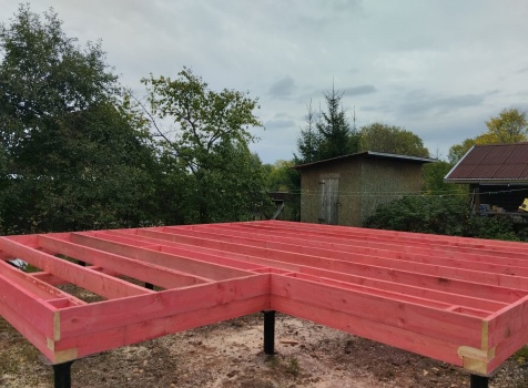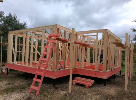 Постройка двухэтажного дома общими размерами 7.0х7.0 ( 7.0х5.0 ) под ломаной крышей и ( 5.0х2.0 ) под отдельной односкатной крышей каркасно - щитовой (Камерной сушки) с утеплением в 200 мм (стены)