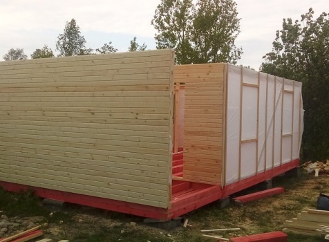 Стены первого и второго этажей: каркасно-щитовые ,40*100,обшиваются снаружи и внутри вагонкой класса В.