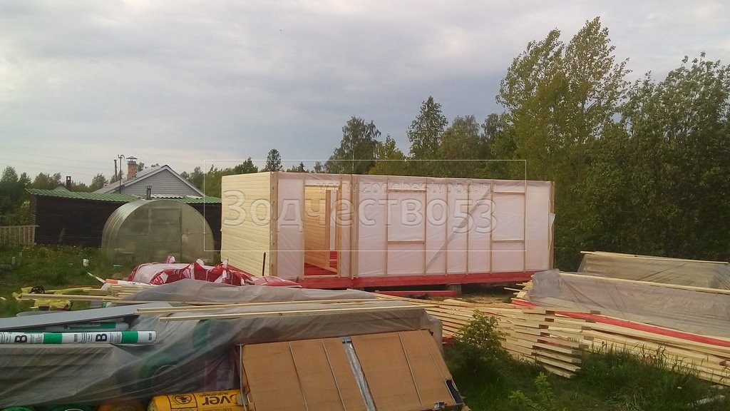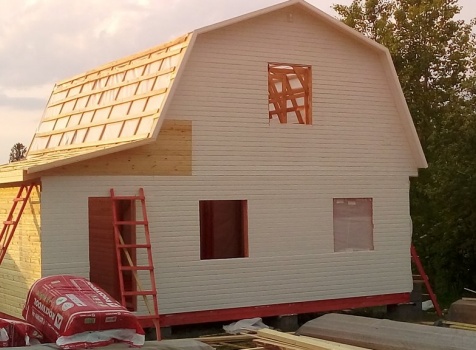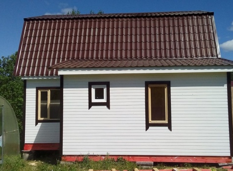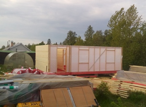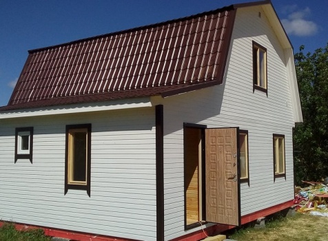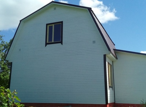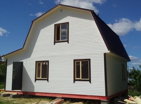Дом двухэтажный,общими размерами 7.0*8.0 каркасно-щитовой с утеплением в 100мм(стены), под ломаной крышей и 2.0*5.0 крыльцо,под отдельной односкатной крышей. Объект построен: Республика Карелия, Прионежскийр-он, СНТ"ЭКО", уч.№ 196.
