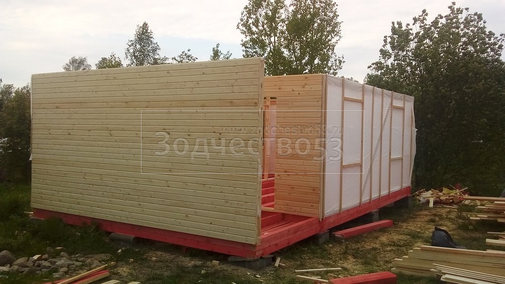- Стены первого и второго этажей: каркасно-щитовые ,40*100,обшиваются снаружи и внутри вагонкой класса В.