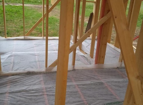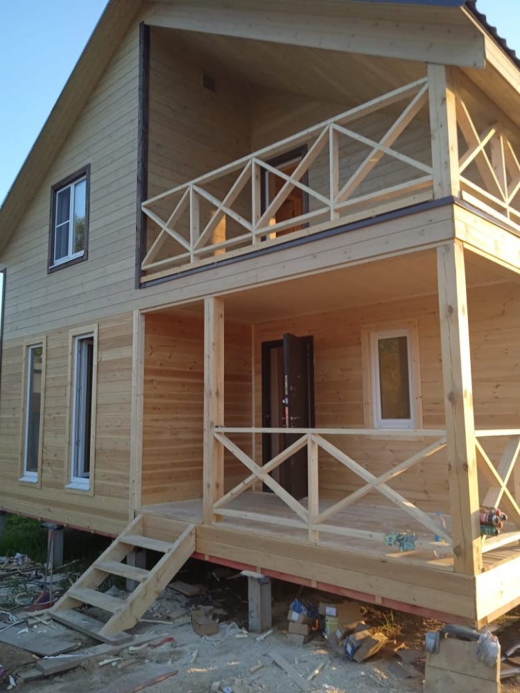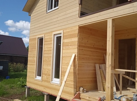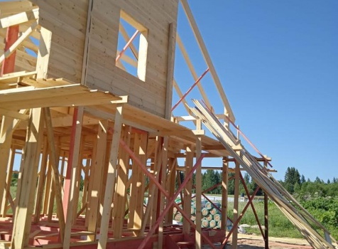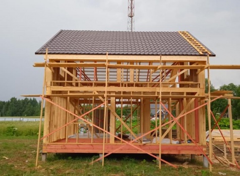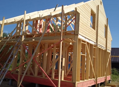 Постройка полутораэтажного дома общими размерами 7.0×8.0 каркасно —щитовой Камерной сушки с утеплением в 200 мм (стены) под двухскатной крышей.