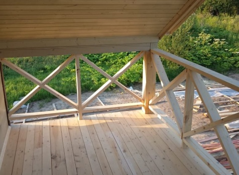 • Терраса: 4.0×2.0 открытая с резными балясинами . Полы шпунтованная доска