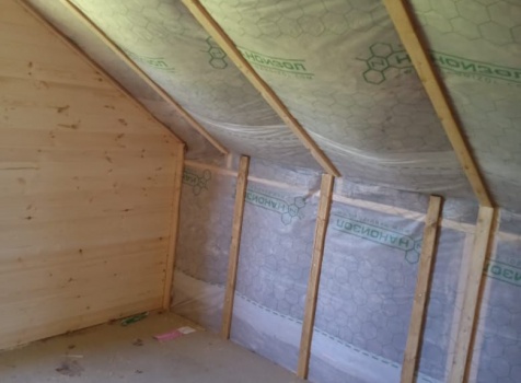 • Потолок по выгородке комнаты и по стропильной системе: подшивается вагонкой