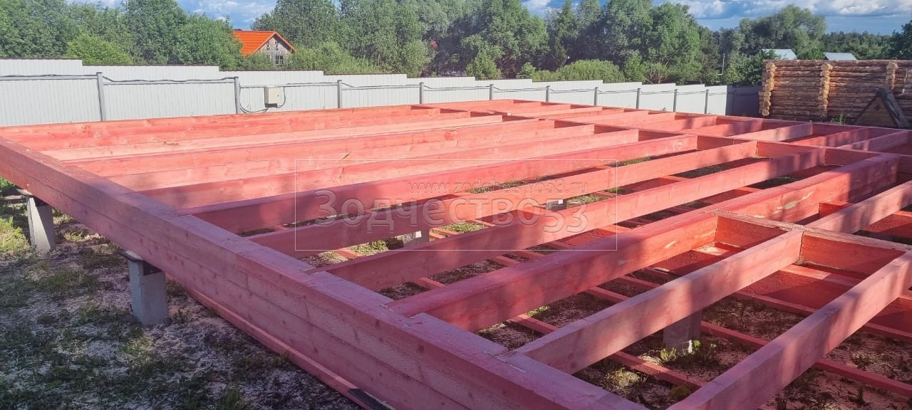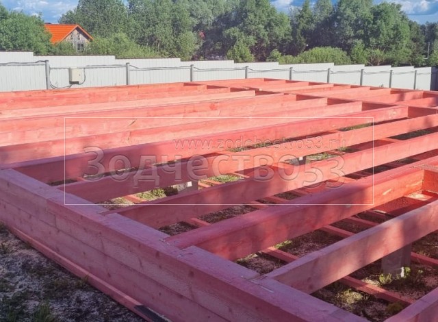 - Обвязка: из бруса 150×150 двойная