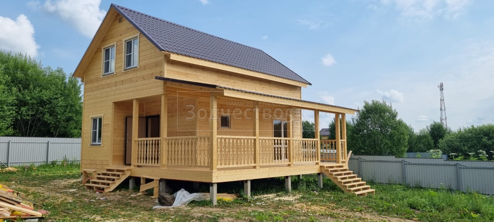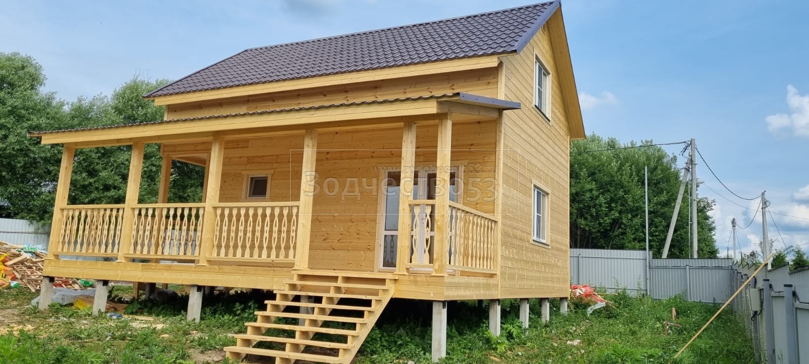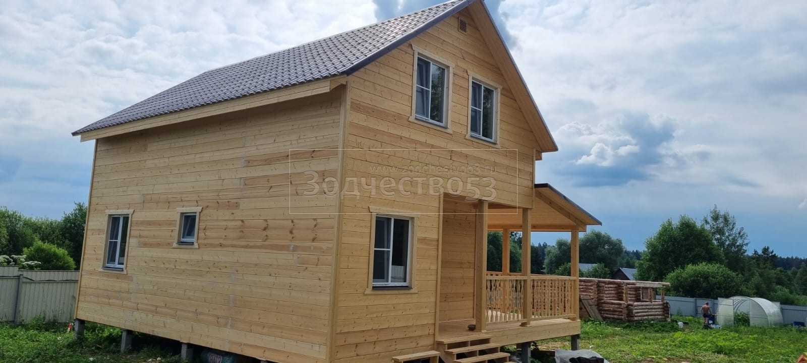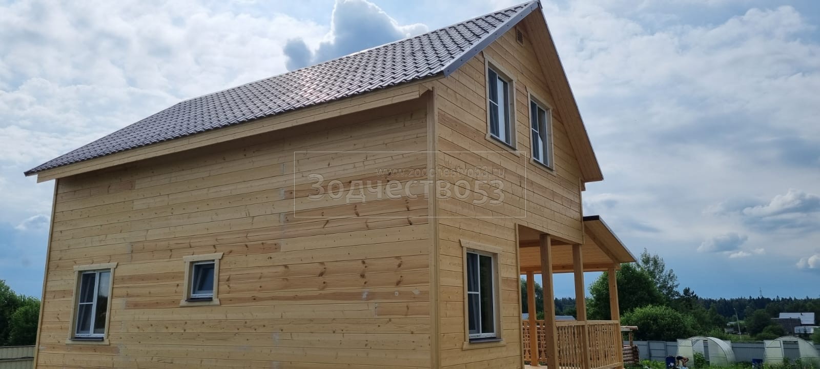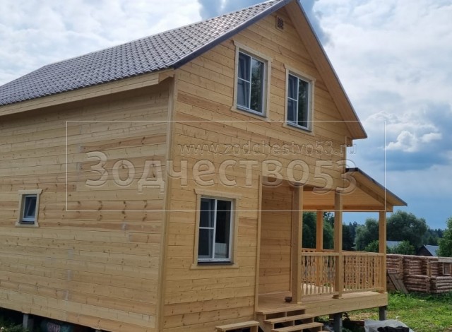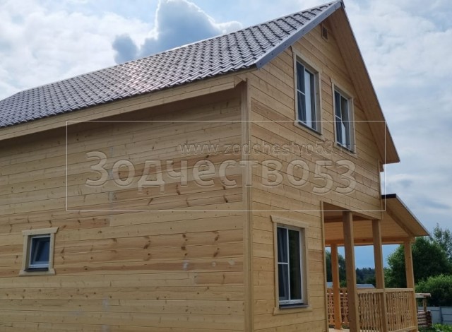 - Фронтоны на дому 6.0 стороне: каркасно-щитовые , обшиваются Имитацией бруса