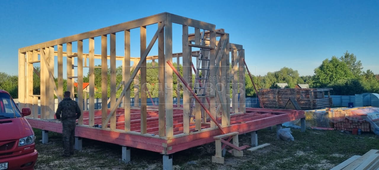 - Стены : Каркасно-щитовые ,обшиваются снаружи имитацией бруса