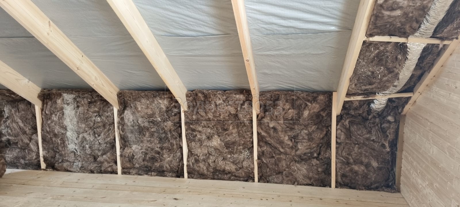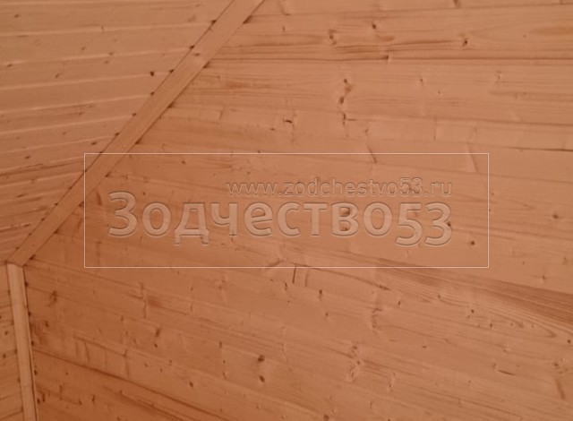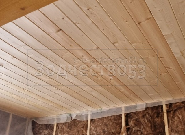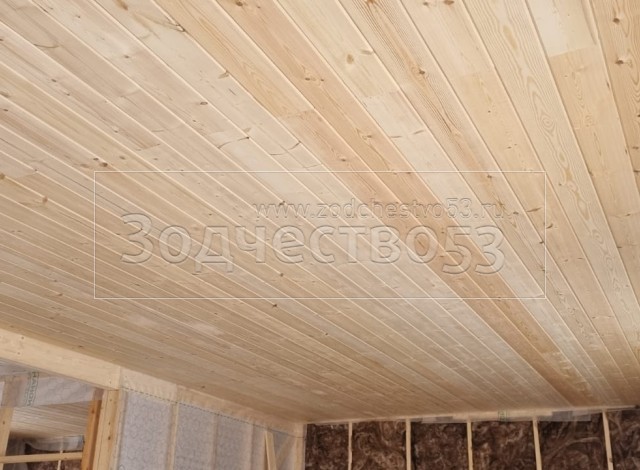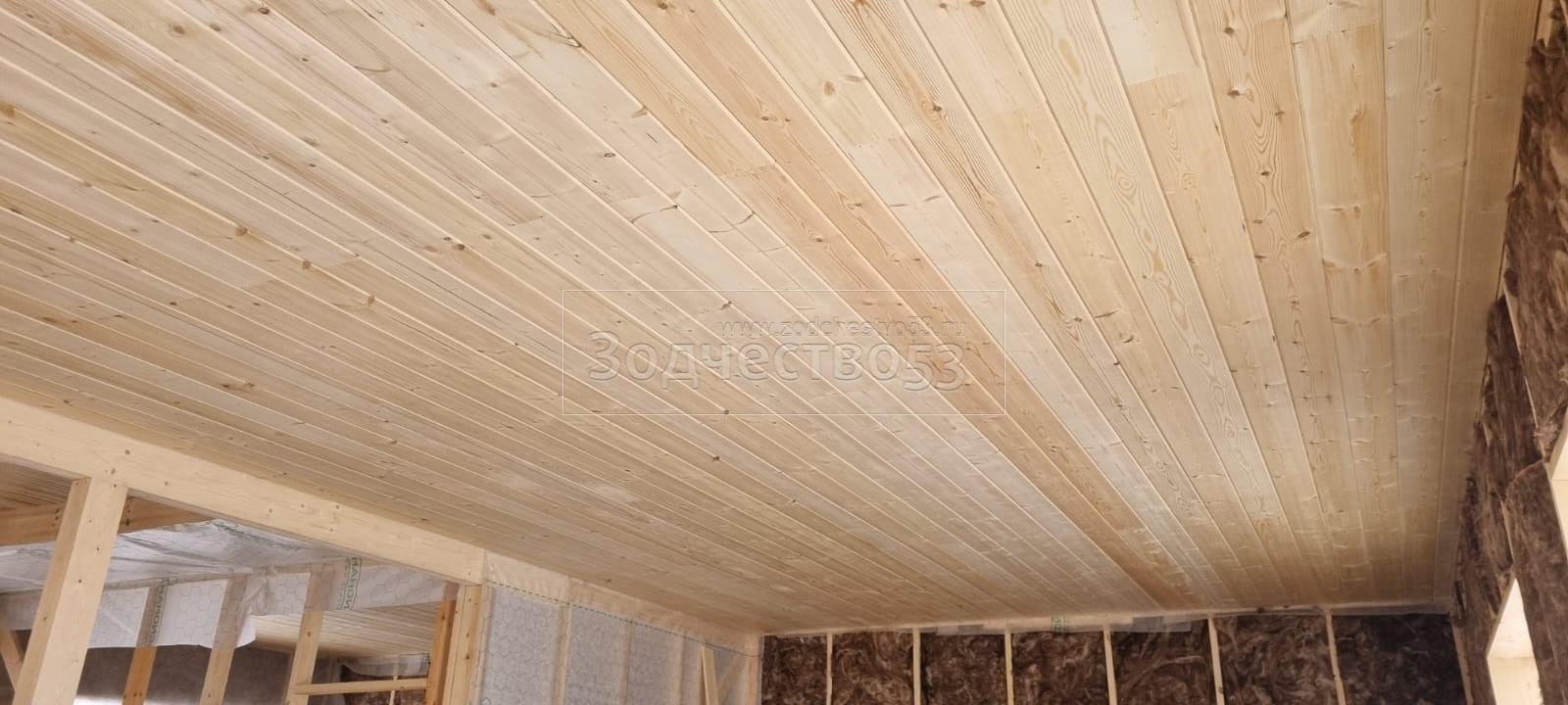 • Потолок по выгородке комнаты и по стропильной системе : подшивается  вагонкой