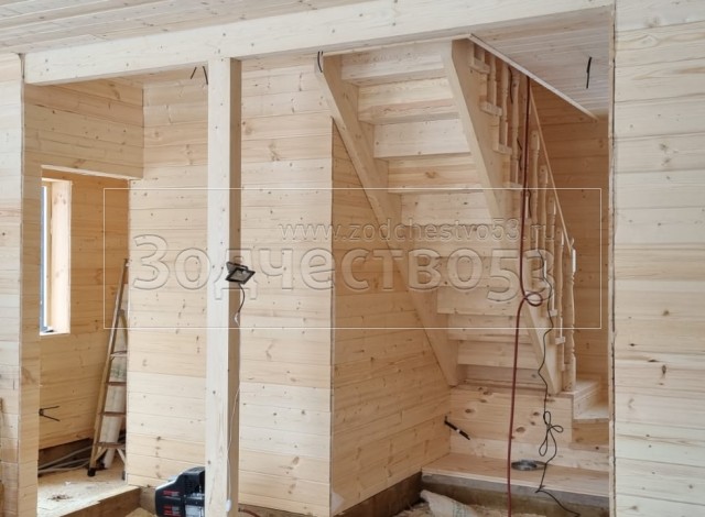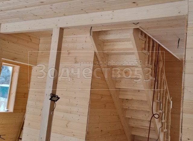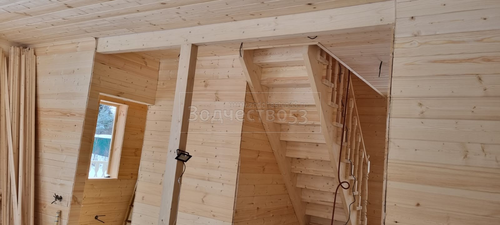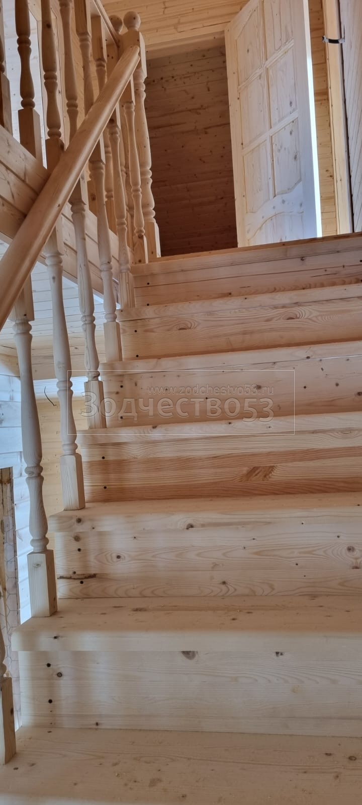 • Лестница: двухмаршевая с точеными балясинами и стартовыми столбами и перилами