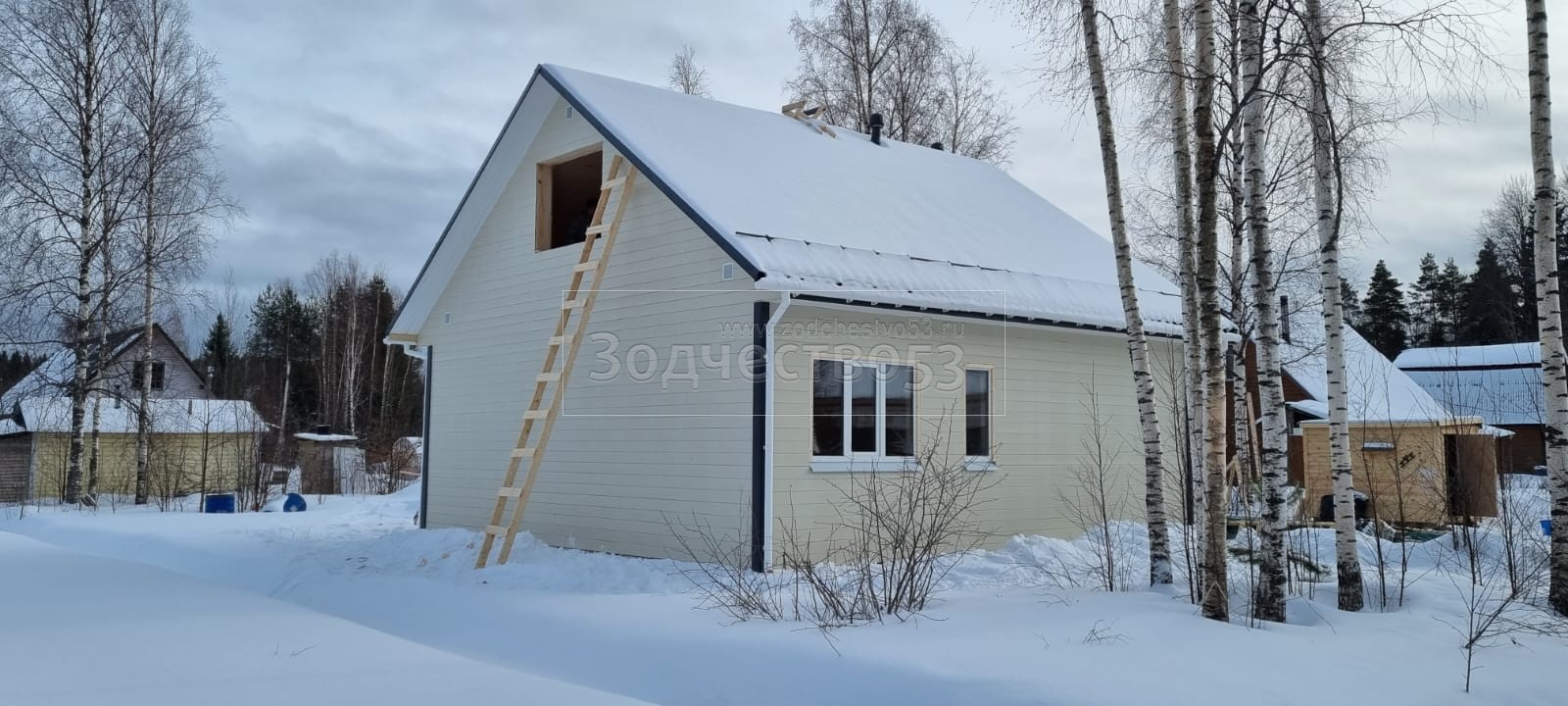 • Фронтоны на дому  8.60 стороне: Каркасно-щитовые (Камерной сушки)  обшиваются Имитацией бруса ( Заводская покраска . Цвет 514 Х)