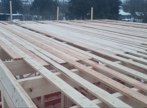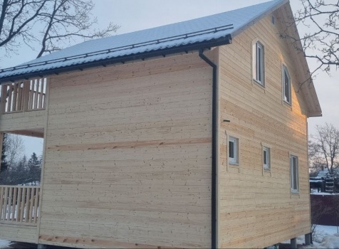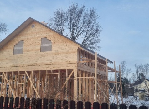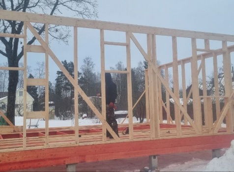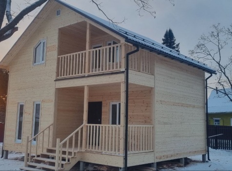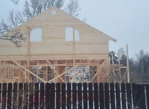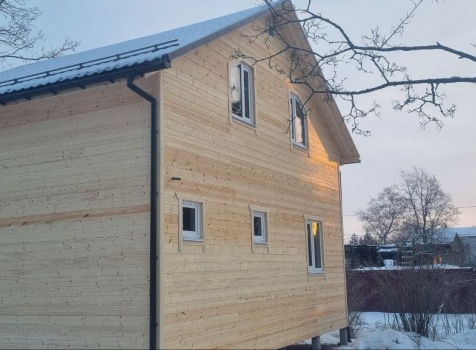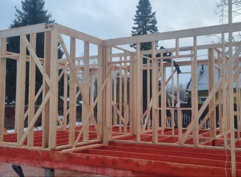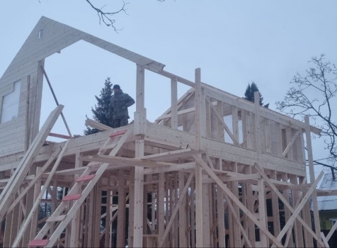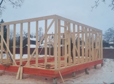 Постройка полутораэтажного дома общими размерами 8.0×7.0 каркасно-щитовой (Камерной сушки) с утеплением в 150 мм (стены) под двухскатной крышей по проекту : https://zodchestvo53.ru/angelina