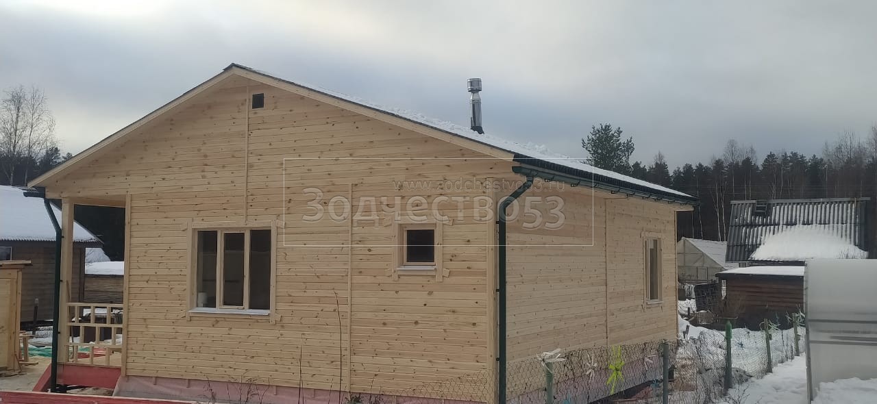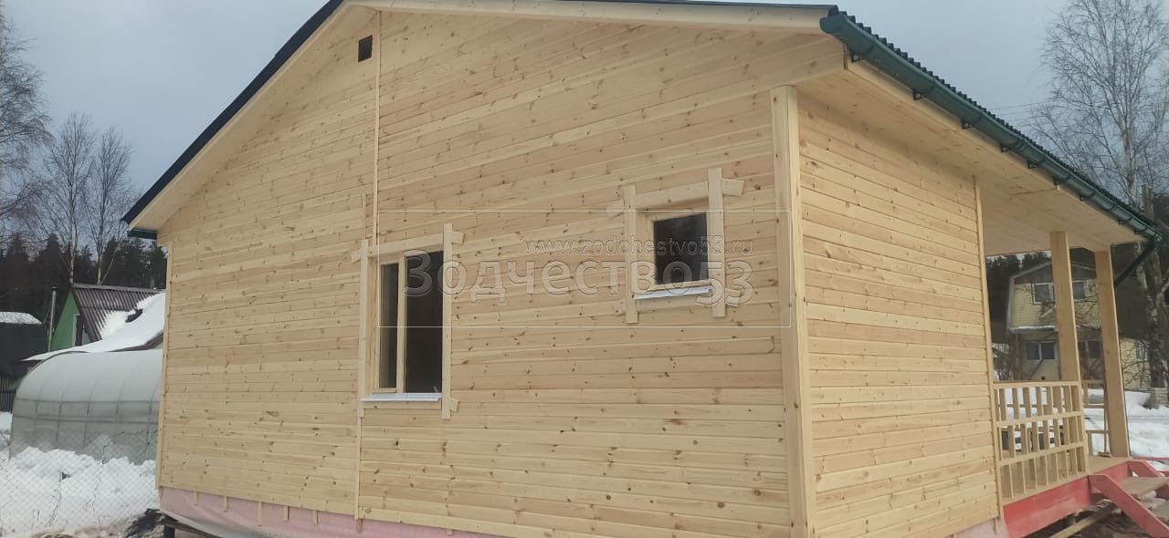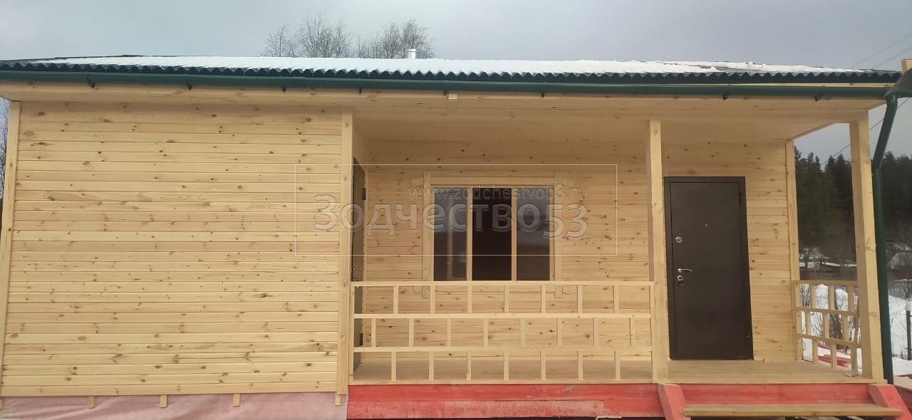 Строительство одноэтажного дома с открытой террасой общими размерами 8.0х7.50 каркасно–щитовой, камерной сушки с утеплением в 150 мм (стены) под общей двухскатной крышей.