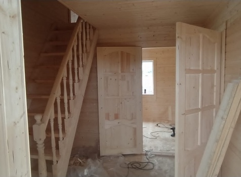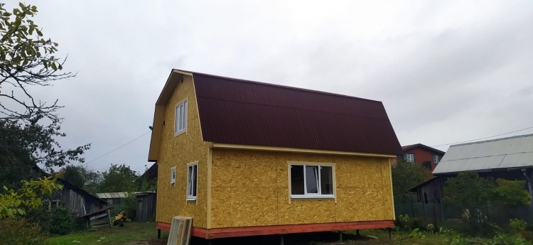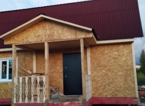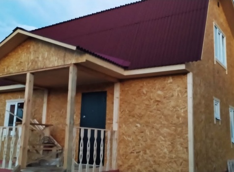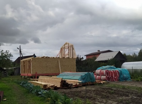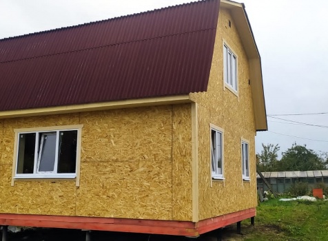 Постройка двухэтажного дома общими размерами 8.0х8.0 ( 6.0х8.0 дом под ломанной крышей каркасно –щитовой Камерной сушки с утеплением в 200 мм ( стены ) и 2.0х3.0 терраса под отдельной двухскатной крышей ) .
