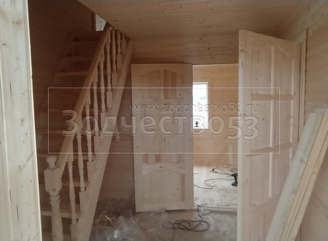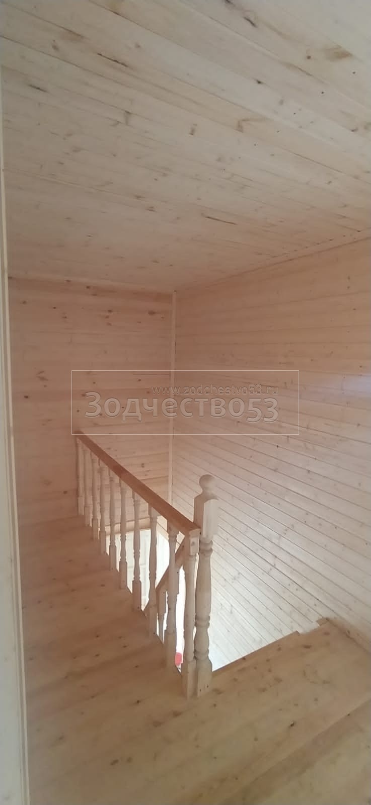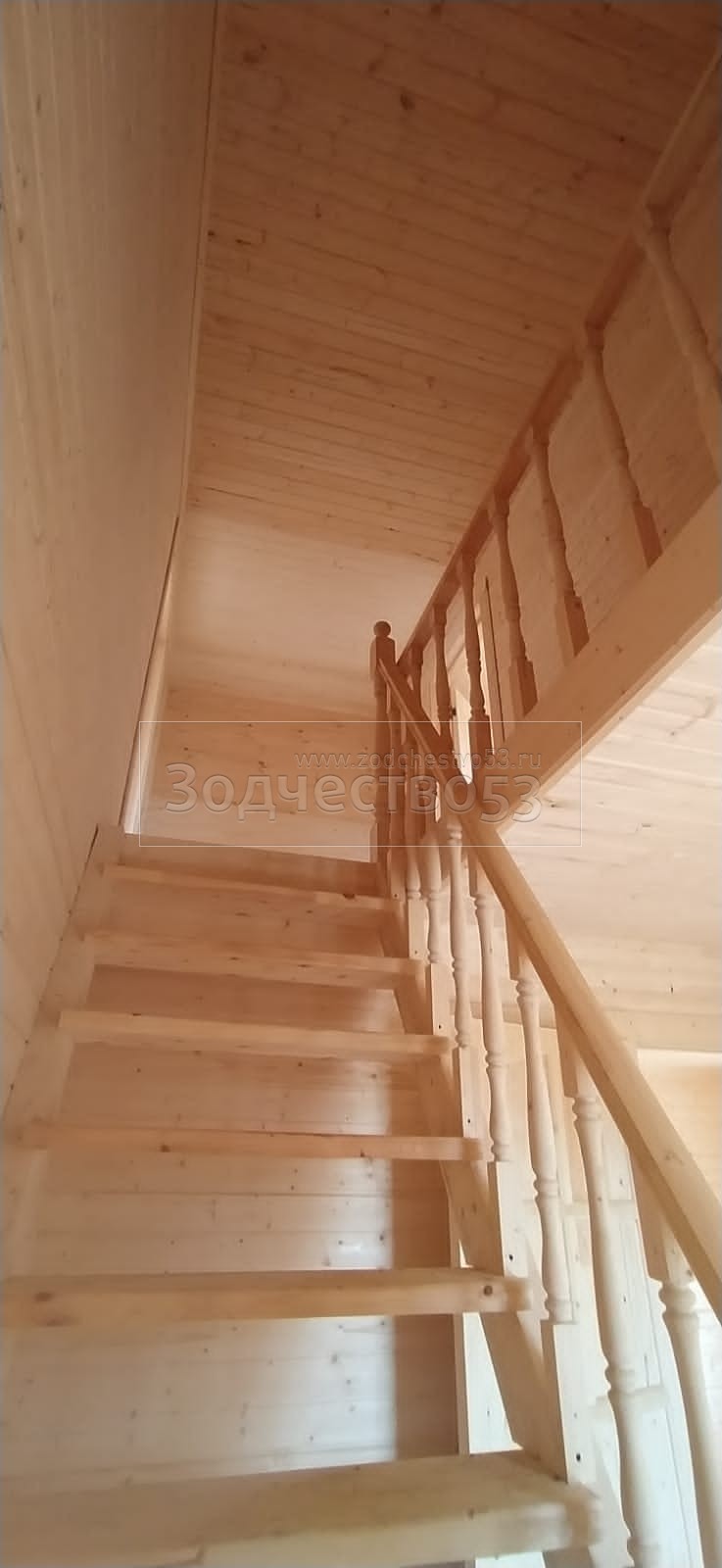 - Лестница: одномаршевая , с точеными балясинами стартовыми столбами и перилами