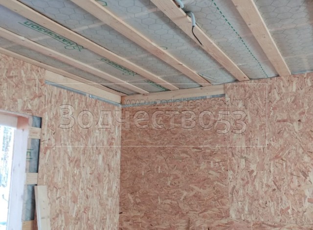 - Потолок по выгородке комнаты и по стропильной системе : подшивается обрезной доской ( Камерной сушки ) плюс первый слой Влагостойкая фанера ОСБ и второй слой Гипсокартон