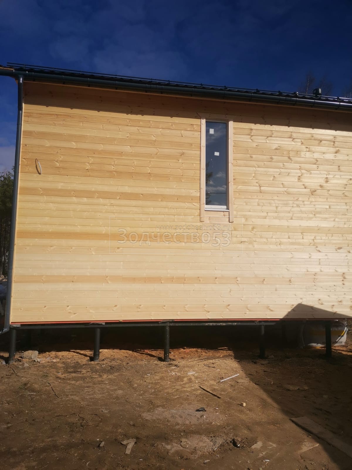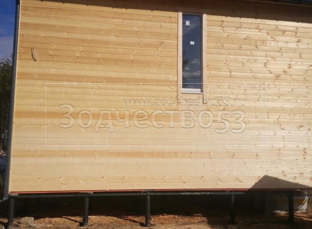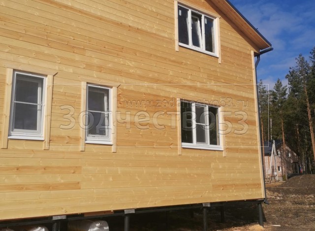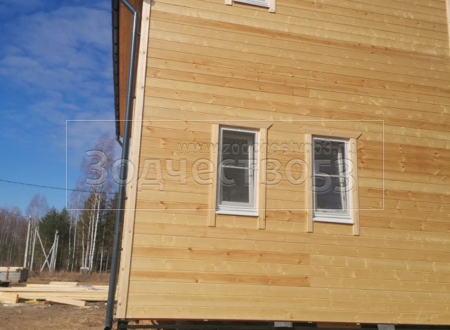 - Стены : каркасно-щитовые, обрезная доска ( Камерной сушки ) обшиваются снаружи Имитацией бруса, а внутри обрезная доска ( Камерной сушки ) плюс первый слой Влагостойкая фанера ОСБ и второй слой Гипсокартон