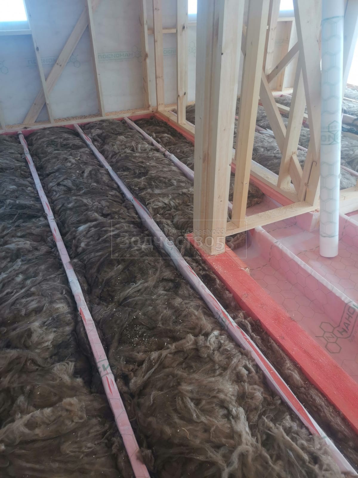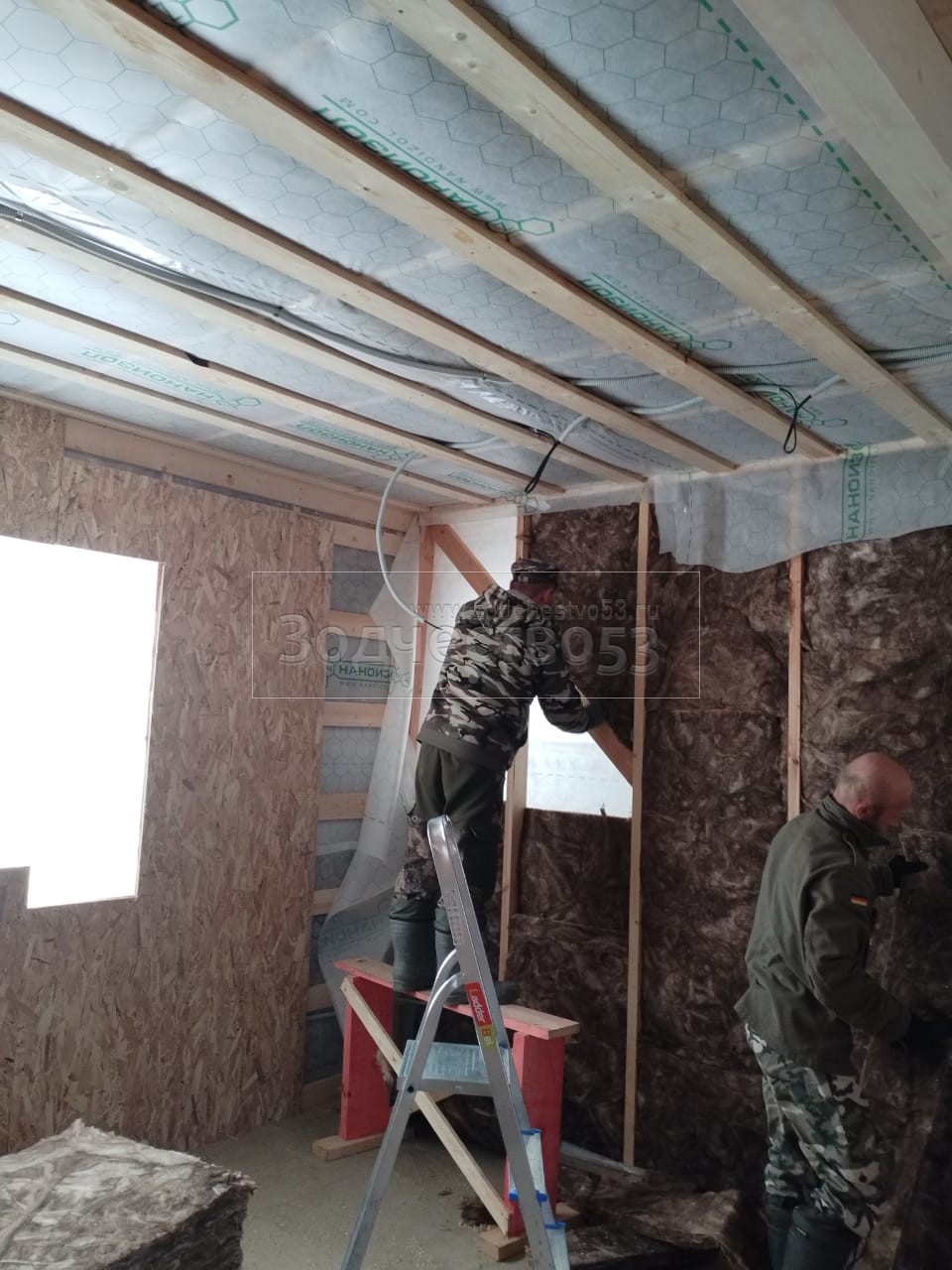 - Потолки : подшиваются обрезной доской ( Камерной сушки ) плюс первый слой Влагостойкая фанерой ОСБ 9 мм и второй слой Гипсокартон