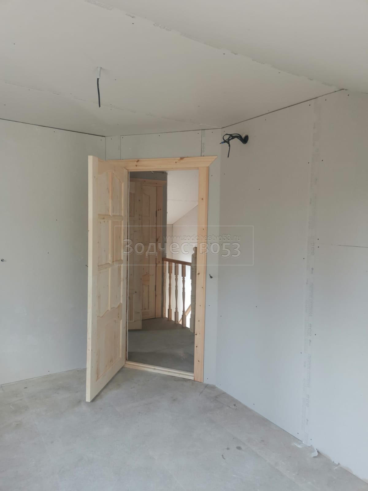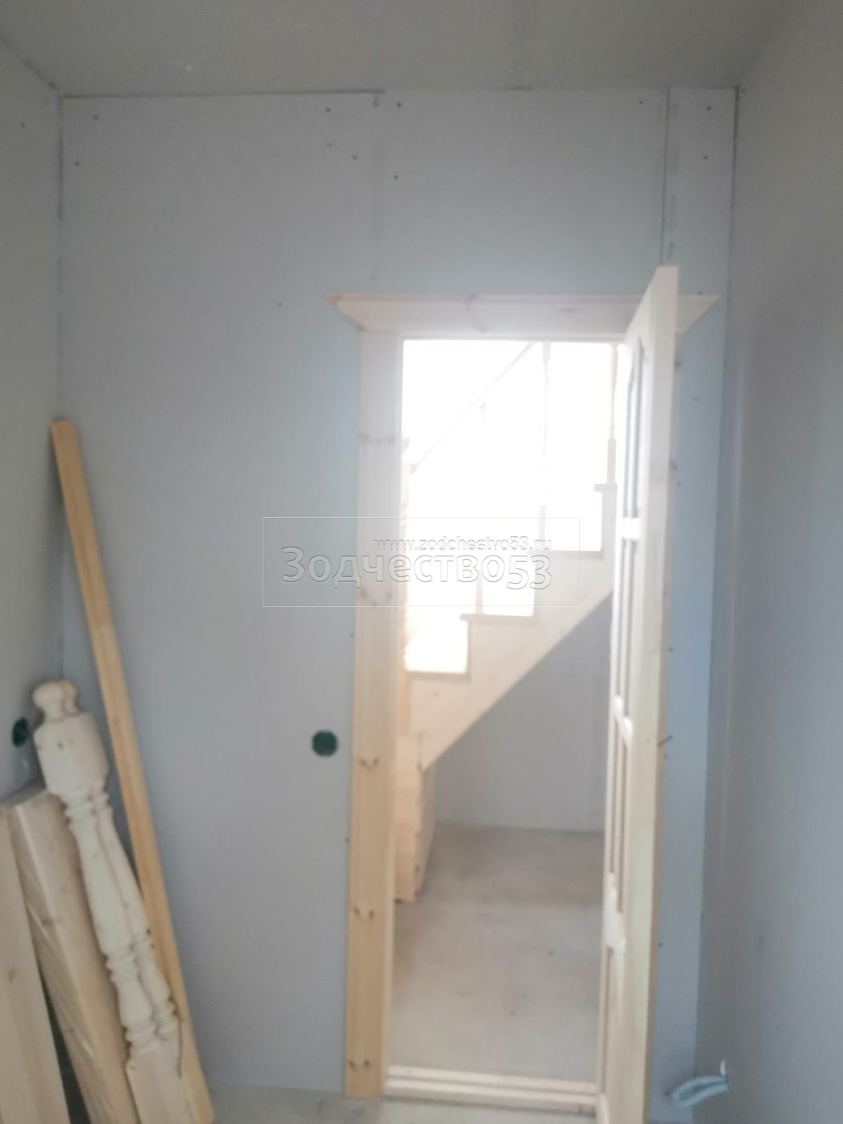 - Второй этаж полутораэтажный: Каркасно — щитовые, обшиваются снаружи Имитацией бруса, внутри обрезная доска Камерной сушки плюс первый слой Влагостойкая фанерой ОСБ и второй слой Гипсокартон