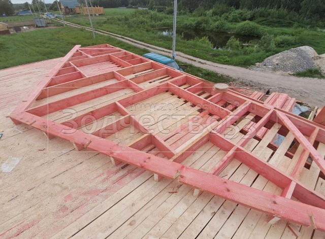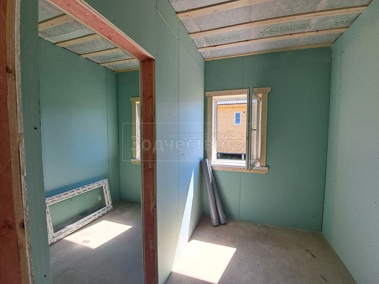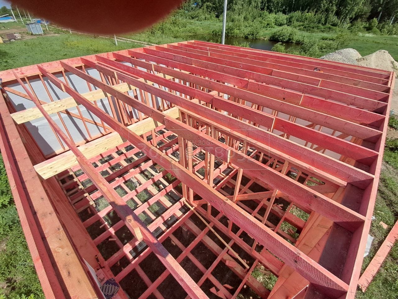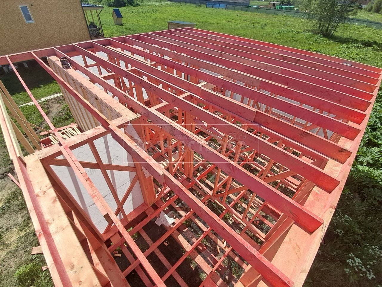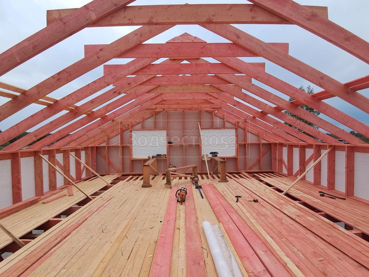 Постройка полутораэтажного дома общими размерами 8.0×8.0 каркасно-щитовой (Камерной сушки) с утеплением в 200 мм (стены) под двухскатной крышей по проекту: https://zodchestvo53.ru/elizaveta