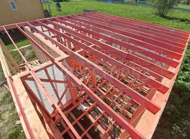 - Фронтоны на дому по 8.0 стороне ( согласно проекта ) каркасно-щитовые, обшиваются Влагостойкой фанерой ОСБ
