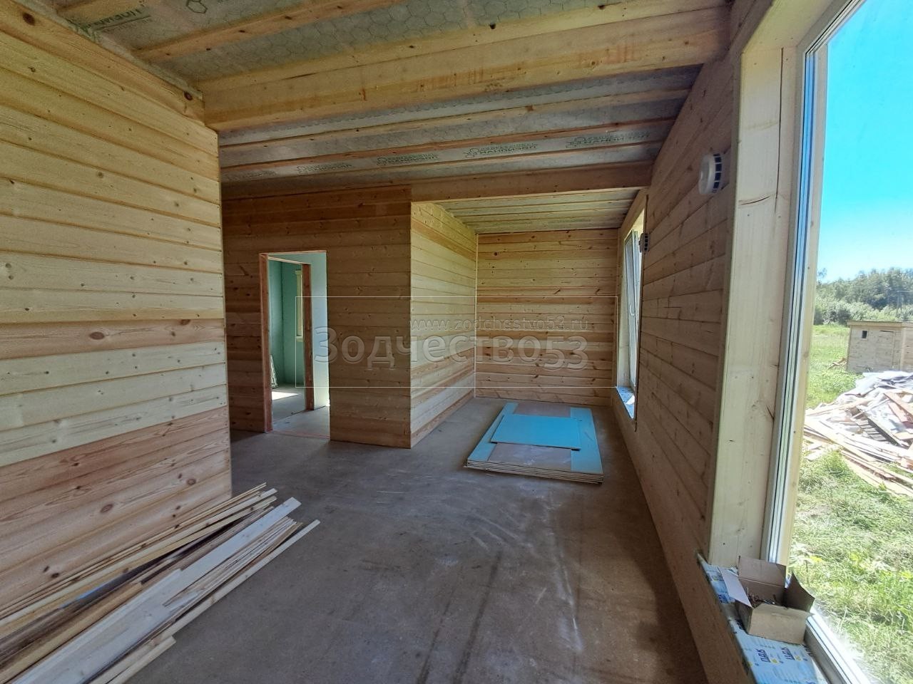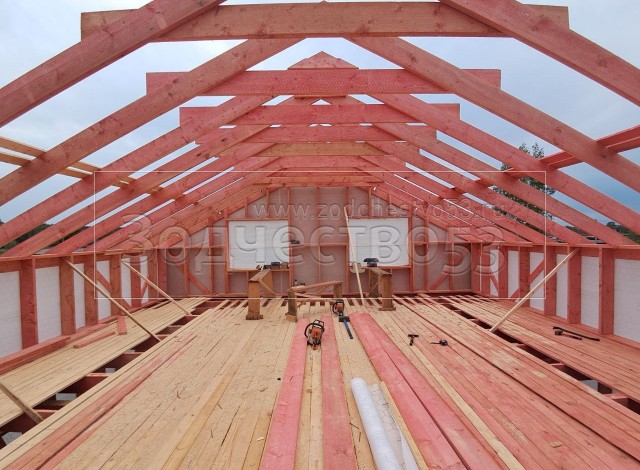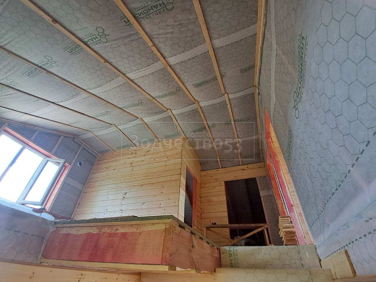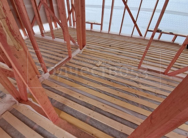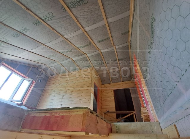 - Потолок по выгородке комнаты и по стропильной системе : подшивается сухой Имиацией бруса