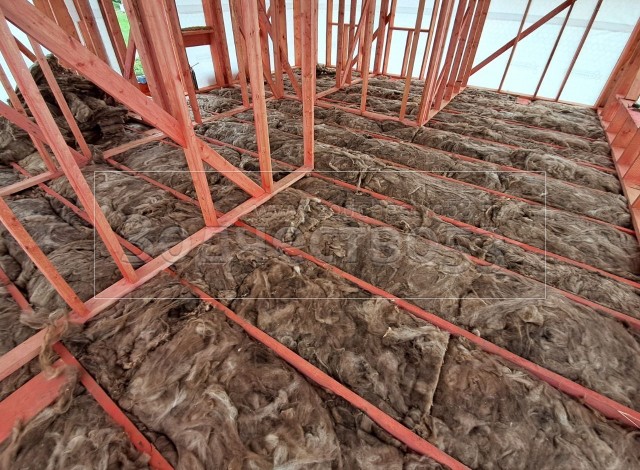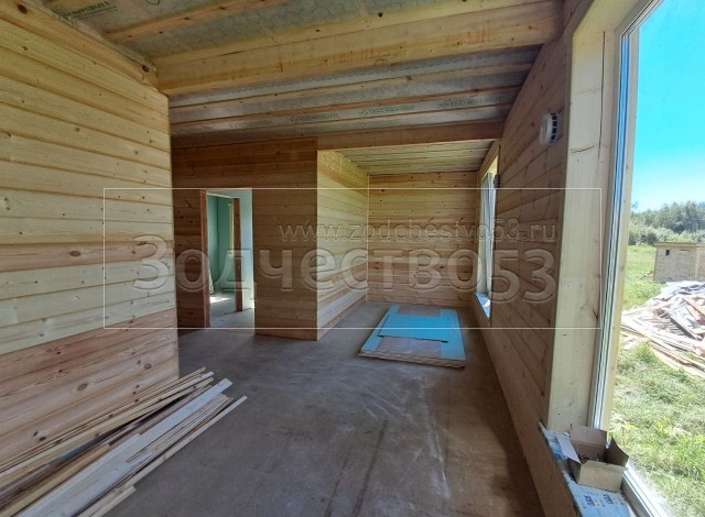 - Стены : каркасно-щитовые, каркас снаружи обшивается влагостойкой ОСБ, а внутри стены Имитацией бруса