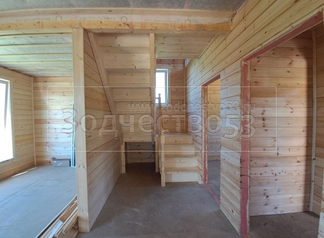 - Перегородки 2 этажа : Каркасно-щитовые, обшиваются с двух сторон сухой Имитацией бруса