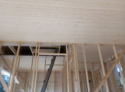 Постройка одноэтажного дома с открытой террасой общими размерами 8.0×8.50 ( 8.0×6.0 дом ) каркасно-щитовой ( Камерной сушки ) с утеплением в 200 мм ( стены ) и ( 8.0×2.50 терраса ) под общей двухскатной крышей