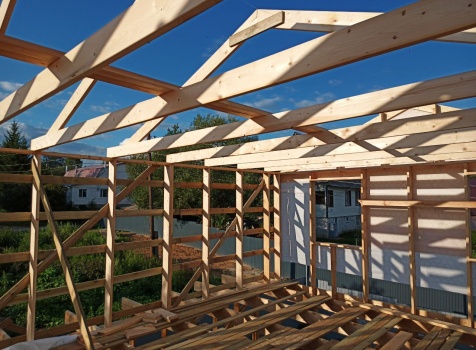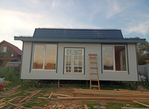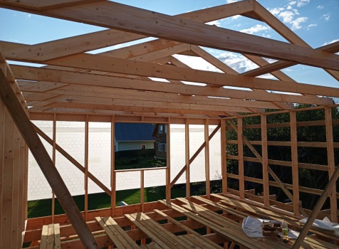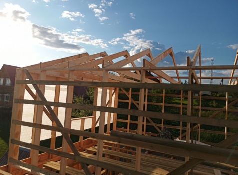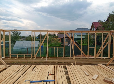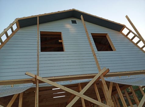 Фронтоны на дому по 7.0 стороне : каркасно-щитовые обшиваются Имитацией бруса