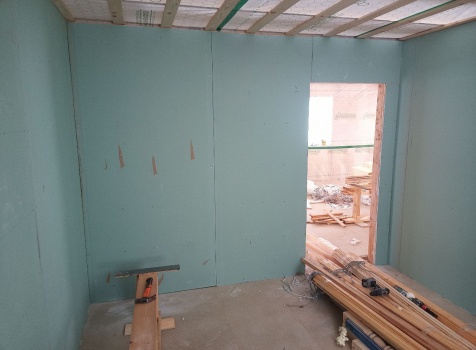 Санузел : Стены обшиваются сухой строганной доской и Влагостойким гипсокартоном
