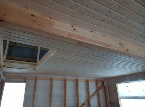 Второй этаж полутораэтажный: внутри стены подшиваются Вагонкой