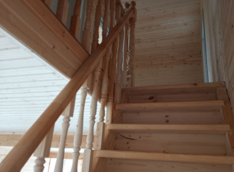 Лестница : одномаршевая с площадкой,точеными балясинами , стартовыми столбами и перилами