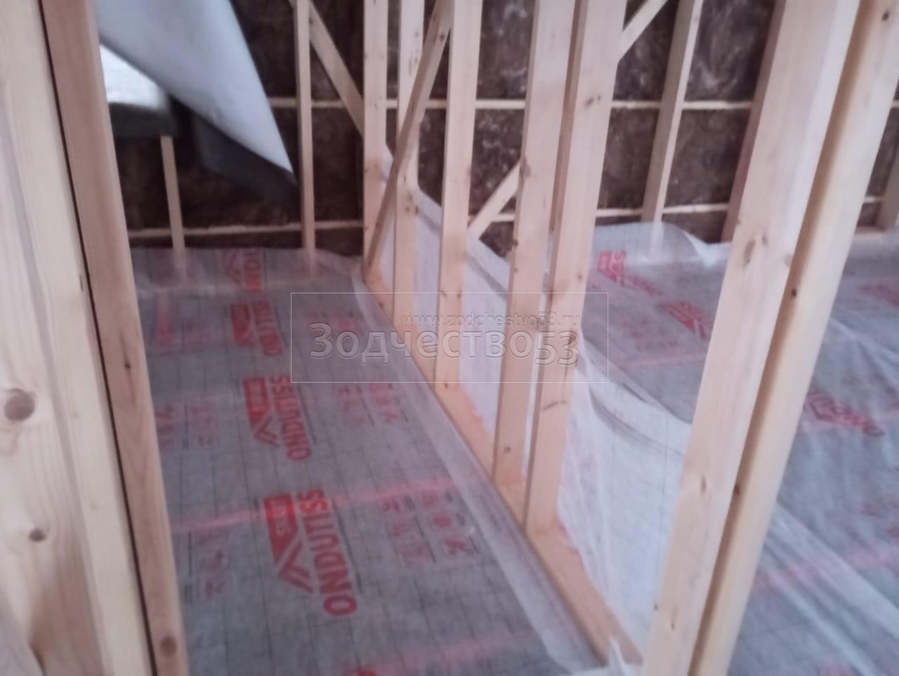 - Второй этаж полутораэтажный : Каркасно-щитовой, каркас снаружи обшивается Имитацией бруса, а внутри стены подшиваются Вагонкой