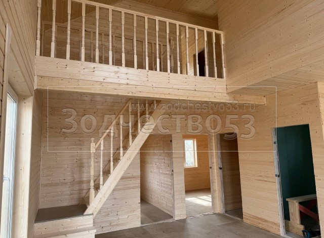 • Лестница : одномаршевая с площадкой ( 0.90×0.90) и точеными балясинами , стартовыми столбами и перилами .