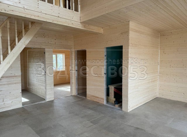 • Второй этаж полутораэтажный: стены Каркасно-щитовые, с уличной стороны обшиваются Влагостойкой фанерой ОСБ, а внутри стены подшиваются сухой Вагонкой