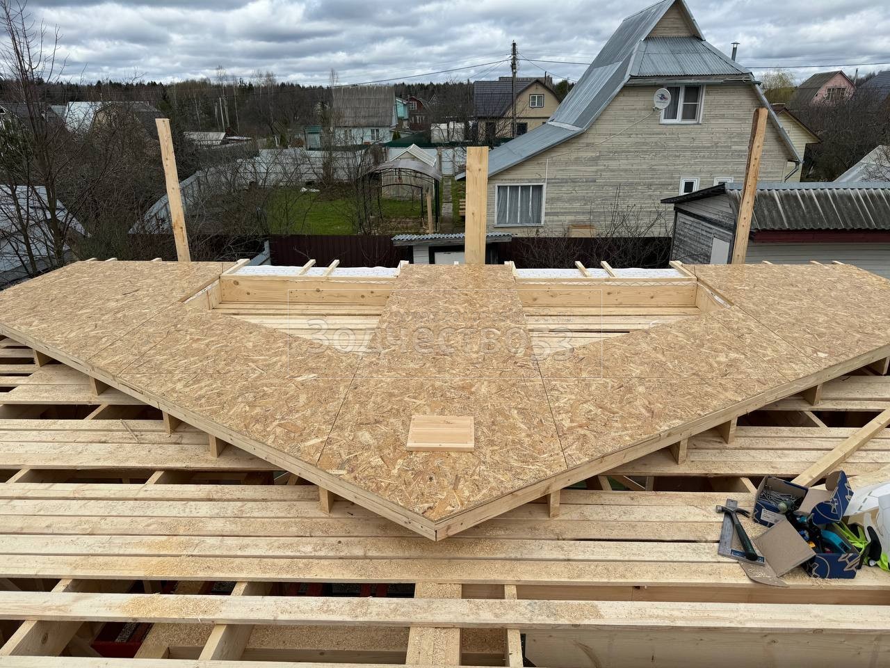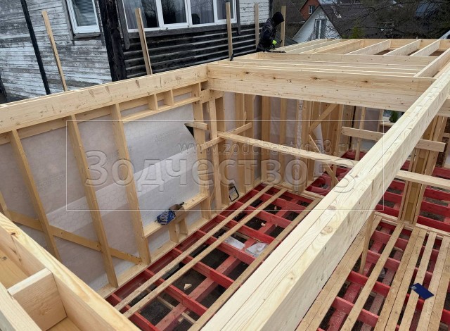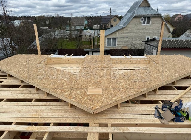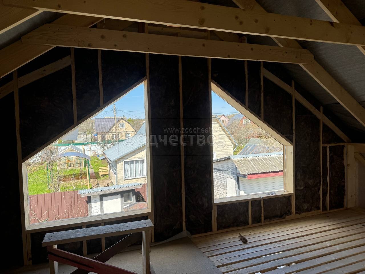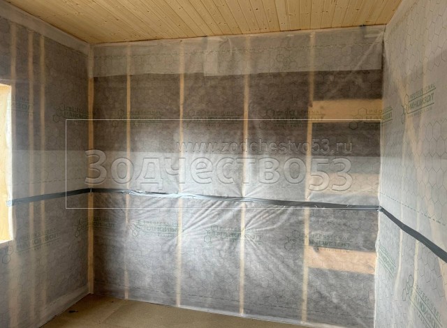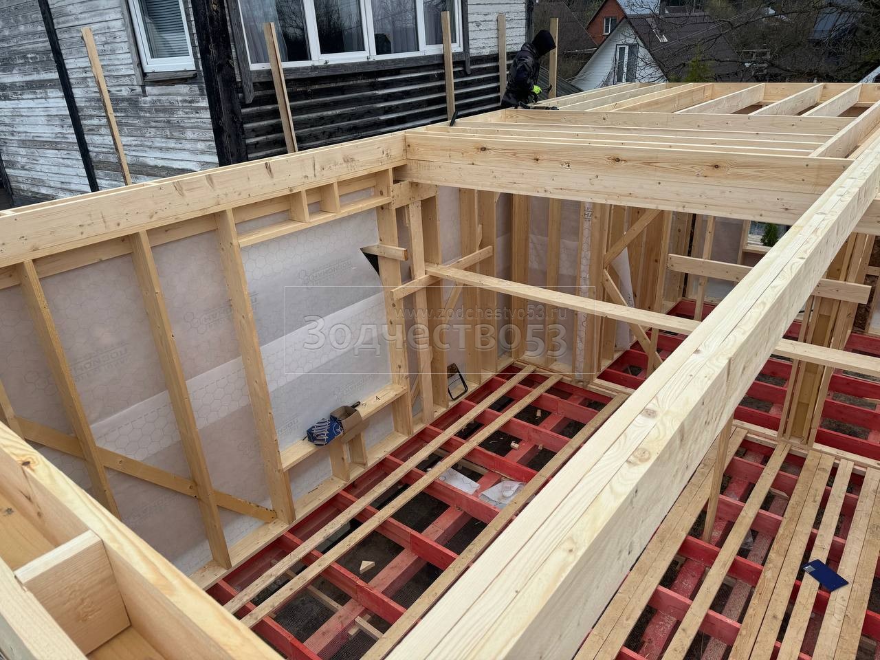 Постройка полутораэтажного дома общими размерами 9.0×7.0 каркасно-щитовой (Камерной сушки) с утеплением в 200мм (стены) под двухскатной крышей по проекту: https://zodchestvo53.ru/elena