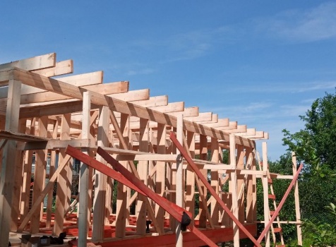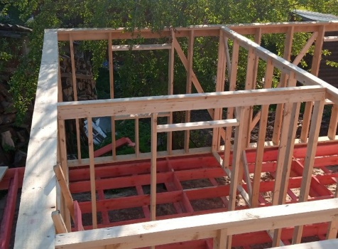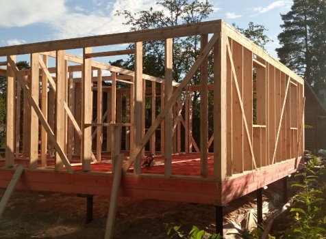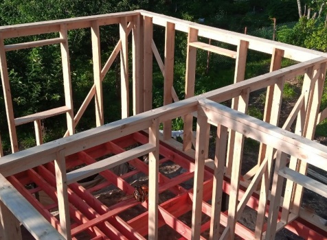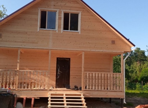Постройка двухэтажного дома с открытой террасой общими размерами 9.0×8.0 ( 7.0×8.0 дом ) Камерной сушки каркасно—щитовой с утеплением в 200 мм ( стены ) и ( 2.0×8.0 открытая терраса ) под общей двухскатной крышей по проекту : https://zodchestvo53.ru/bahram