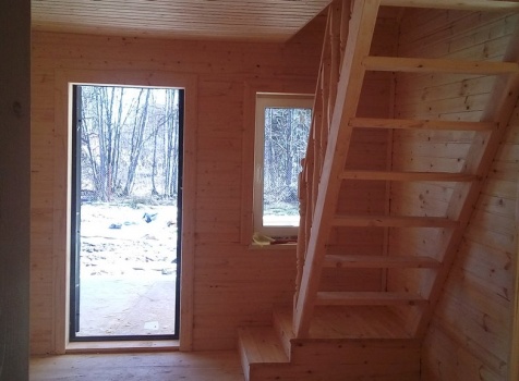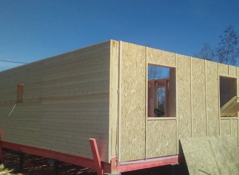 Каркасный дом общими размерами 9.0*8.50 (6.0*9.0 каркасно-щитовой с утеплением в 150 мм под ломанной крышей и терраса 2.50*9.0 под отдельной односкатной крышей). Объект построен: Ленинградская обл., Кировский р-он, СНТ СН "ст. Назия", 6 линия, уч.376.