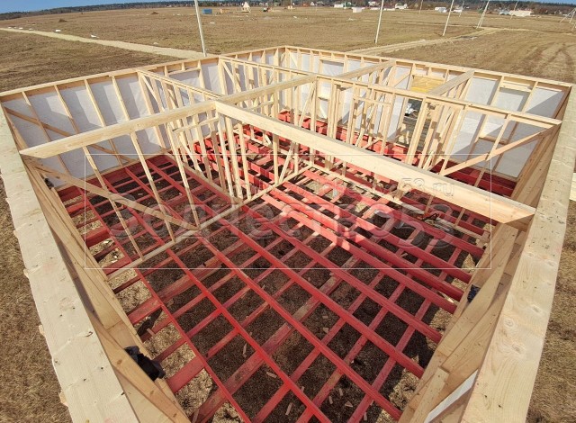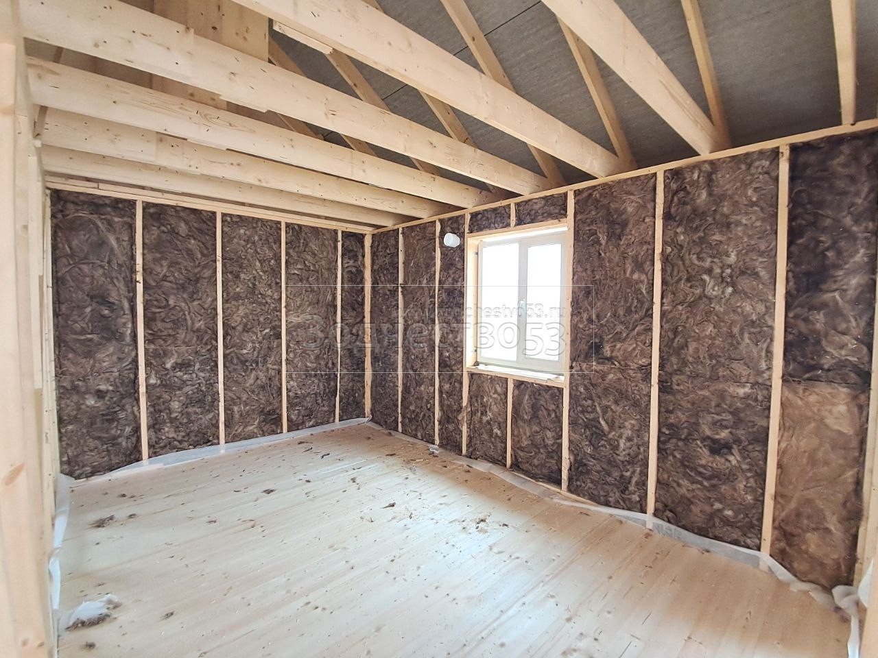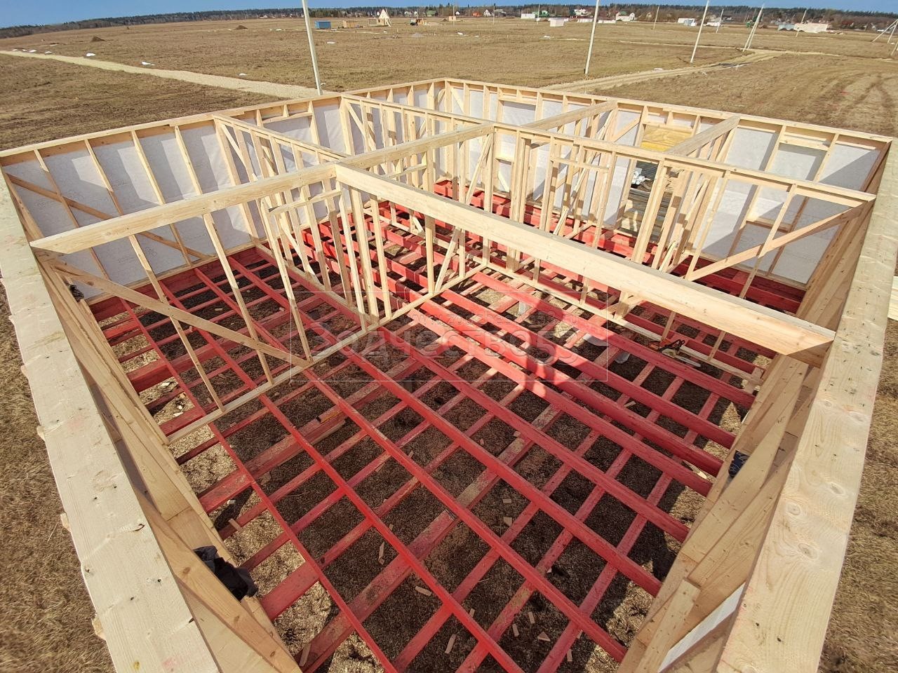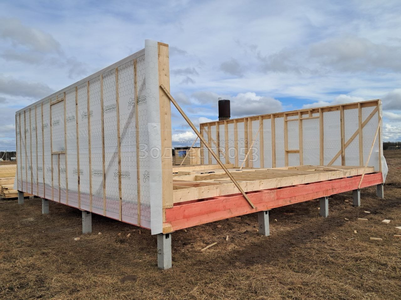 Постройка одноэтажного дома общими размерами 9.0×9.0 каркасно-щитовой (Камерной сушки) с утеплением в 200 мм (стены) под двухскатной крышей по проекту: https://zodchestvo53.ru/lyudvig