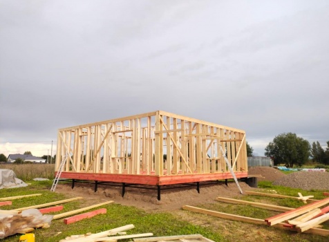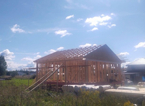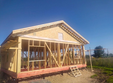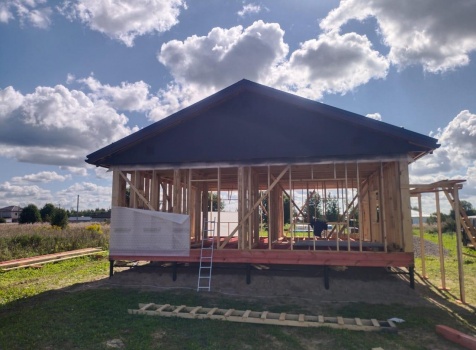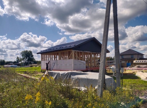Постройка одноэтажного дома общими размерами 9.0×9.0 каркасно-щитовой (Камерной сушки) с утеплением в 200 мм ( стены ) под двухскатной крышей: