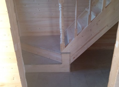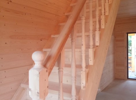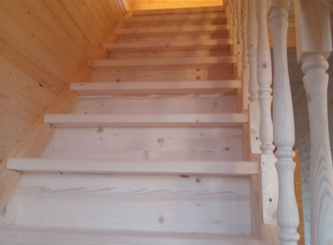 • Лестница : одномаршевая, с точеными балясинами, стартовыми столбами и перилами