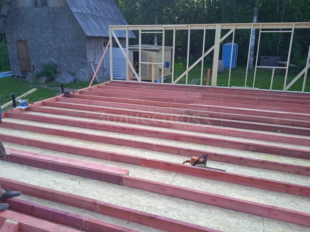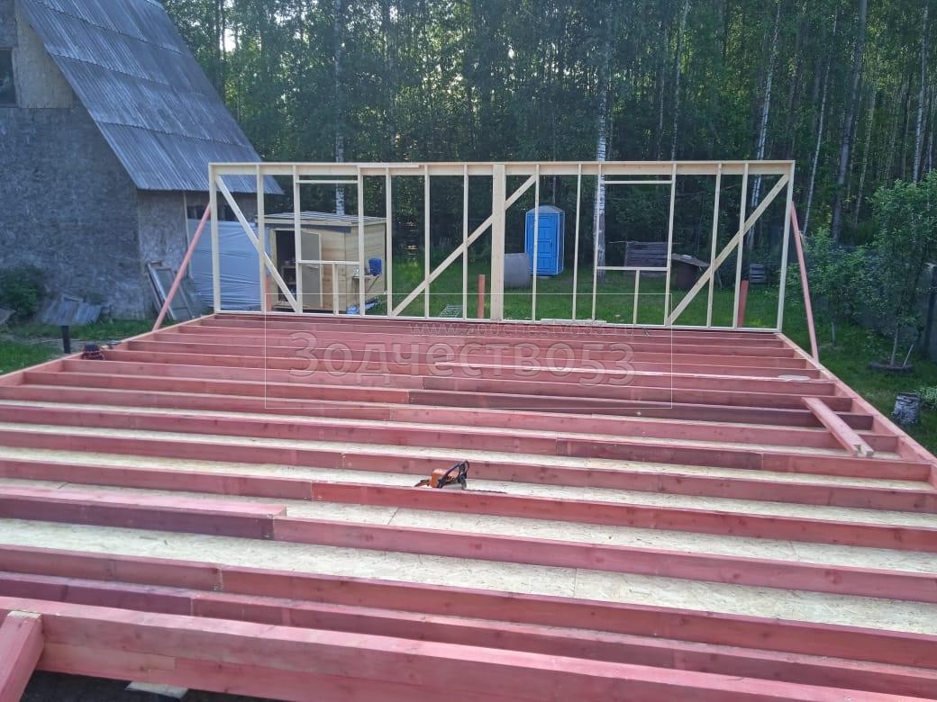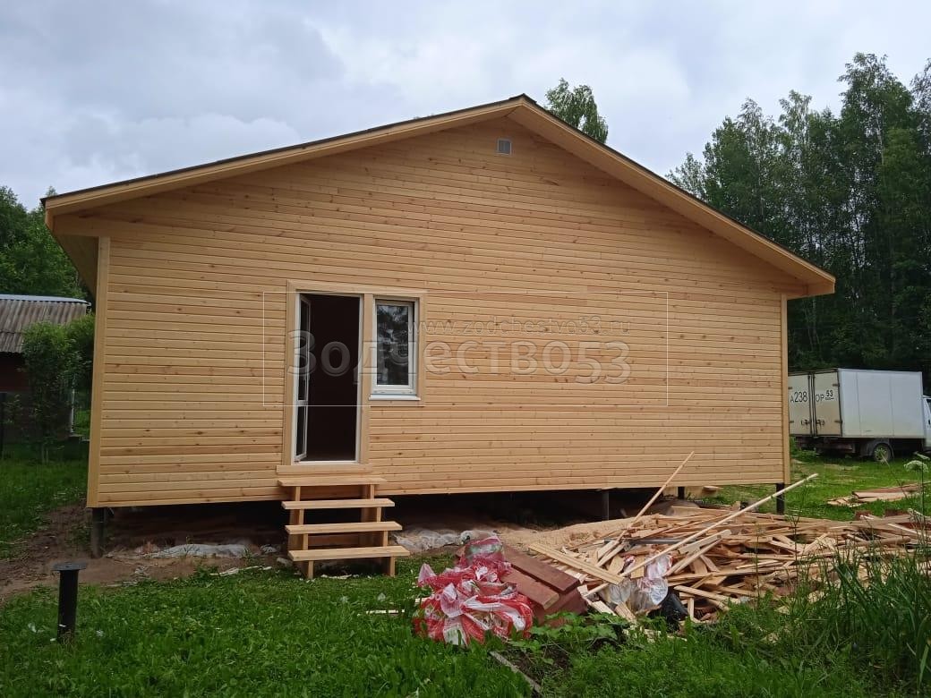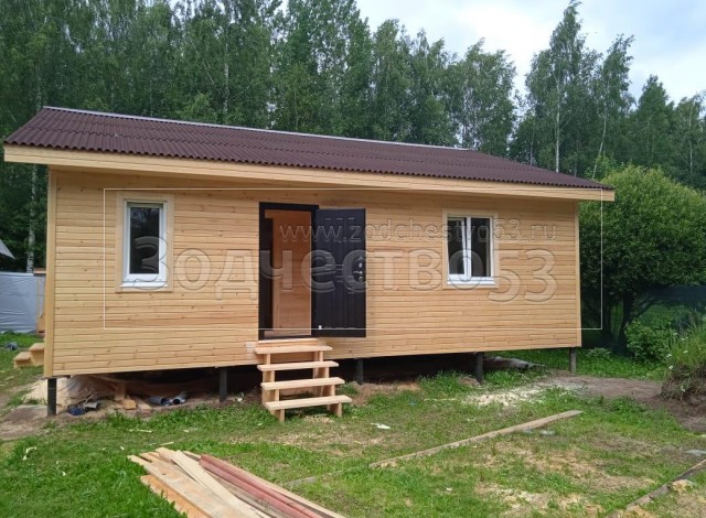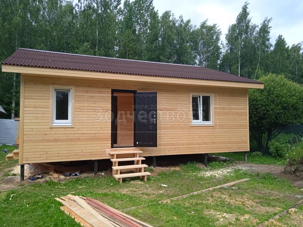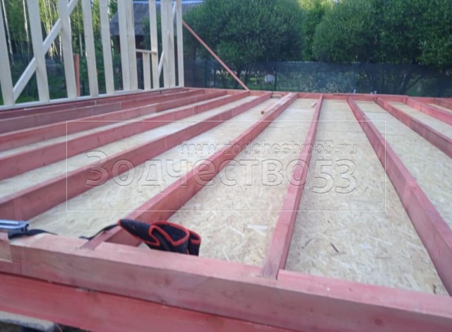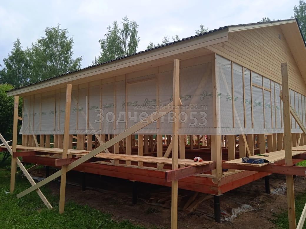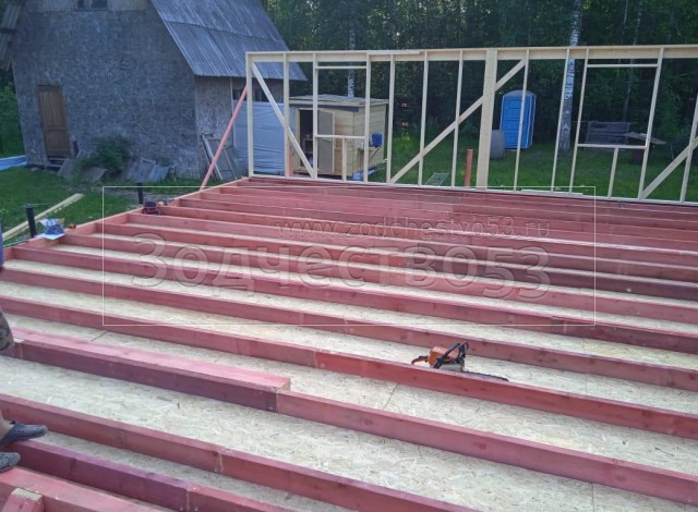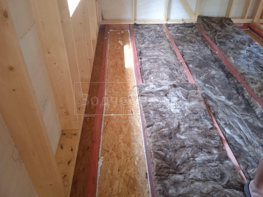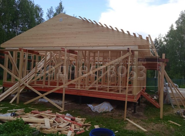 Постройка одноэтажного дома по проекту " Людвиг" общими размерами 9.0×9.0 каркасно-щитовой (Камерной сушки) с утеплением в 150 мм (стены) под двухскатной крышей.