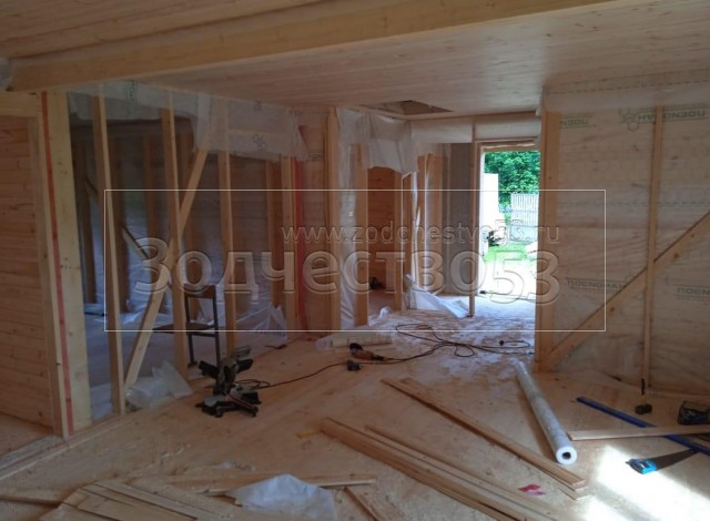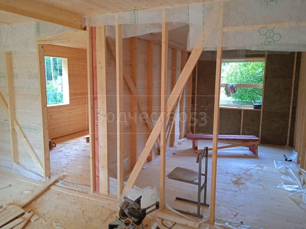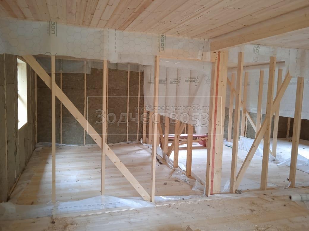 - Перегородки: каркасно-щитовые 40×100, с двух сторон обшиваются вагонкой